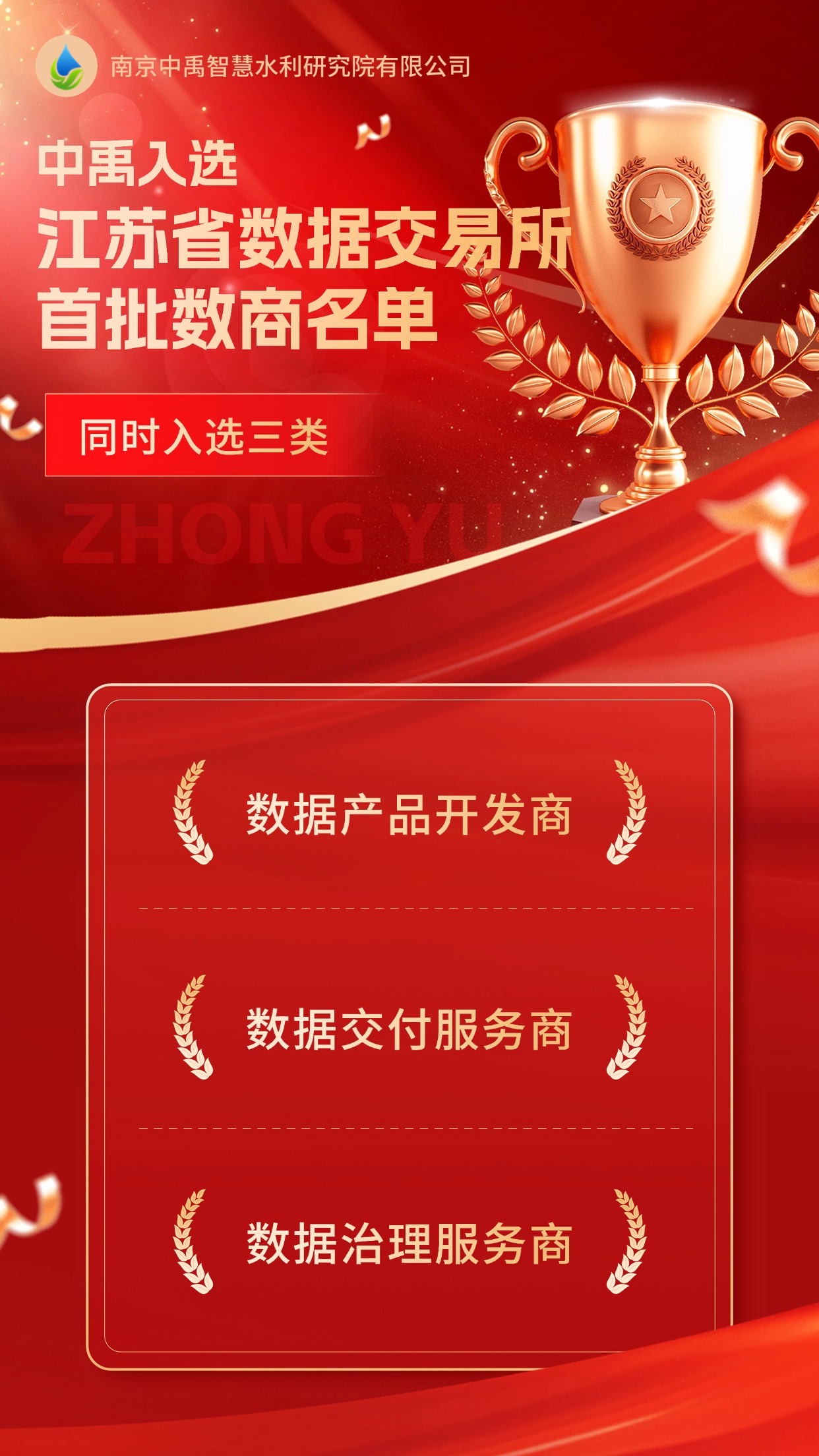 江苏省数据交易所首批数商名单公布!中禹同时入选3大类